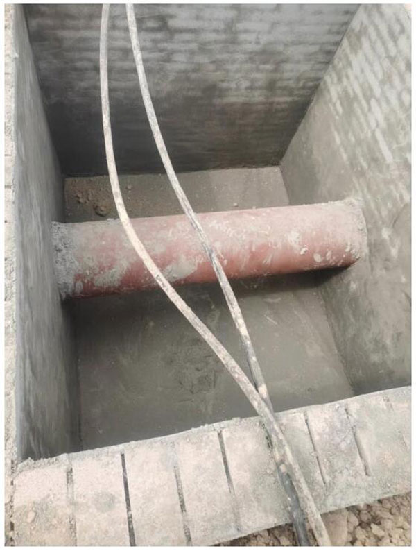 最初的設計圖紙考慮了現場(chǎng)水質(zhì)變化問(wèn)題,計劃采用時(shí)差多普勒二合一傳感器測量,果渣多的時(shí)候啟動(dòng)多普勒單傳感器測量方式,果渣少時(shí)采用時(shí)差上下游測量方式,現場(chǎng)實(shí)際了解到水中的果渣一直含量高,安裝時(shí)本著(zhù)節約成本、高性?xún)r(jià)比的優(yōu)選做了進(jìn)一步的改進(jìn),在儀表井內只用了一個(gè)抱箍就完成了流速傳感器和液位計的安裝、測量。超聲波傳感器從管道抱箍頂部直插(開(kāi)孔尺寸為30mm),壓力液位計從抱箍側下方插入安裝(開(kāi)孔尺寸為28mm)