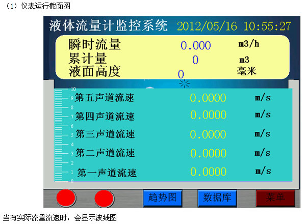 安裝說(shuō)明: 1、 首先選好安裝支架的固定中軸,支架可以隨意滑動(dòng),旋轉角度; 2、 將支架固定在管道上之后可以旋轉或者活動(dòng)滑塊來(lái)選擇傳感器安裝位置 3、 其次安裝固定最下端傳感器位置,然后調節滑塊確定其他傳感器位置 4、 安裝完畢后卸下支架 另外說(shuō)明: 安裝支架如果是在儀表井內操作,儀表井的大小要保證管徑的邊到儀表井的兩邊距離里不低于0.8米。 人機界面截圖說(shuō)明 |